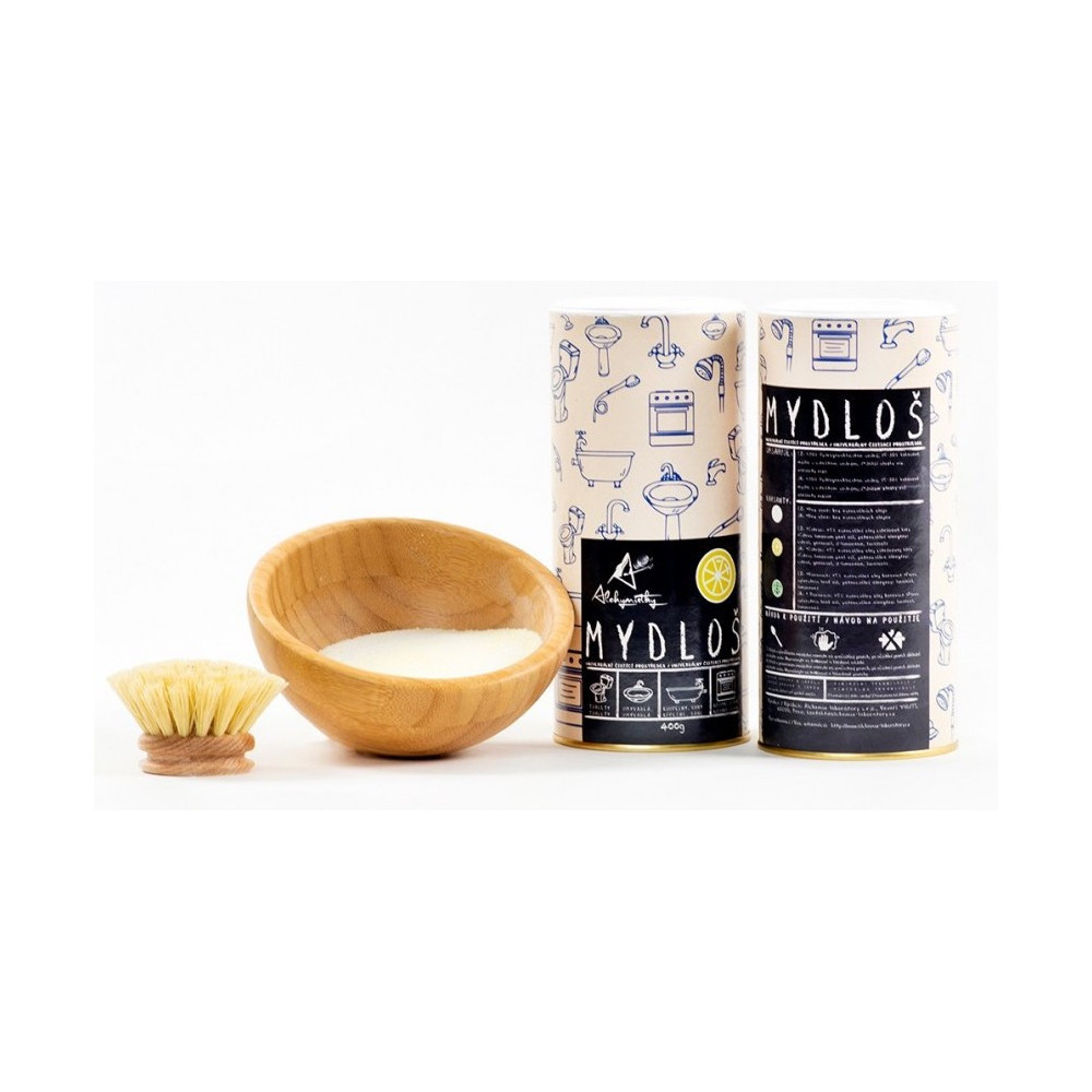 Alchymistky mydloš je 100% přírodní a plně biologicky odbouratelný ekologický čistící prostředek pro celou domácnost vyrobený na bázi kvalitního kokosového mýdla. Tento univerzální čistič je k dispozici ve třech variantách - s osvěžující vůní citronu, se svěží vůní borovice nebo zcela bez parfemace pro citlivé osoby. Každá varianta poskytuje výjimečnou čisticí schopnost a je šetrná k životnímu prostředí.