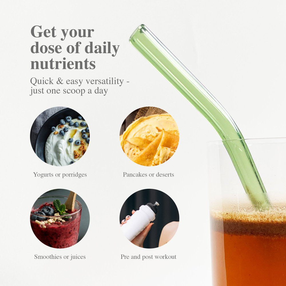 Stačí ho nasypat do oblíbeného smoothie, mléka nebo jogurtu, rozmíchat a užívat si jeho příjemnou chuť jako svůj malý každodenní rituál.