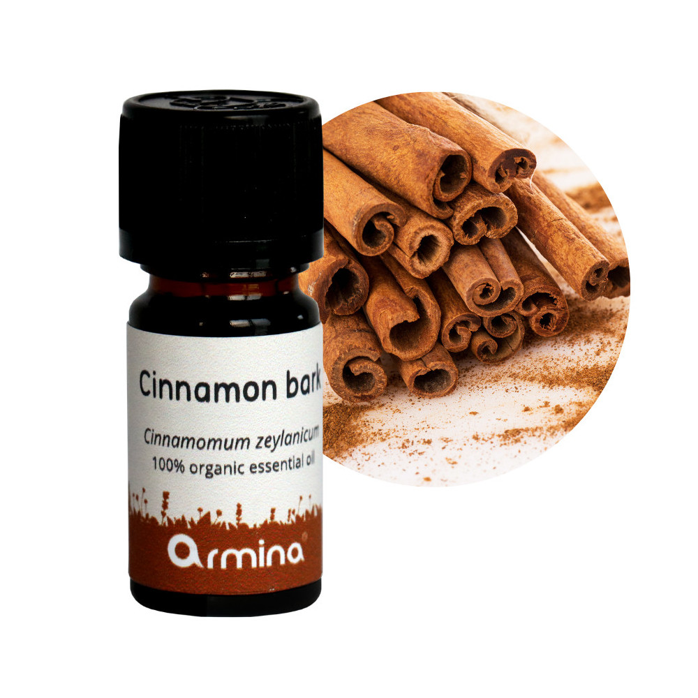 Armina bio esenciální olej skořice ceylon - 100% přírodní destilovaný z kůry Cinnamomum zeylanicum. Teplá, kořeněná, intenzivní vůně pro účinnou relaxaci a podporu trávení. POUZE do difuzéru - dermokaustický, nejvyšší alergenní potenciál. Nevhodný pro těhotné, kojící, děti do 12 let, astmatiky. Nepoužívat na pokožku ani do koupele. NEUŽÍVAT VNITŘNĚ.