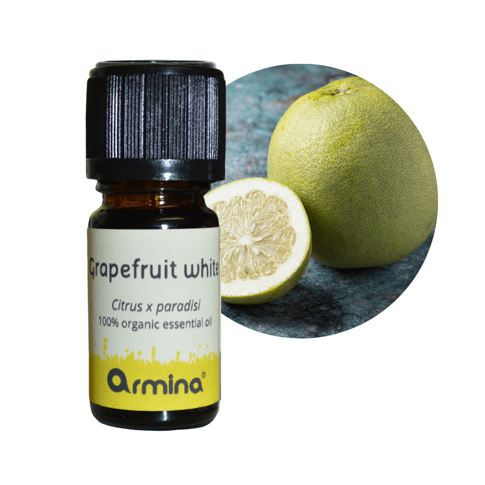 Armina bio esenciální olej grapefruit - 100% přírodní za studena lisovaný z kůry Citrus paradisi. Osvěžující citrusová vůně s baktericidními a antivirovými účinky. Energizuje, bojuje proti mentální únavě, podporuje trávení. Anti-aging péče, pomáhá při vypadávání vlasů. FOTOTOXICKÝ - čekat 8-12 hodin před sluncem. Nepoužívat s levandulí. Vhodný od 6 let, v těhotenství od 4. měsíce. NEUŽÍVAT VNITŘNĚ.
