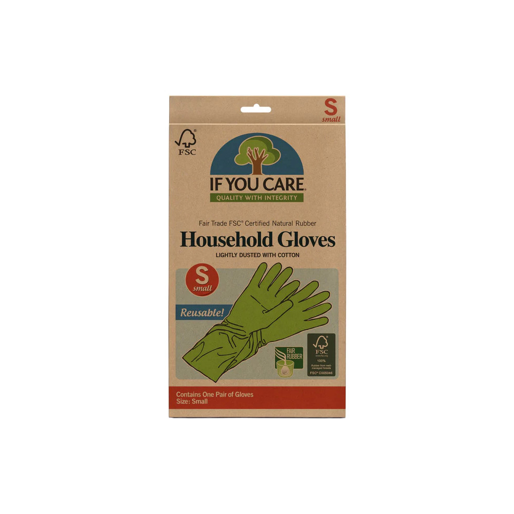 If you care vícenásobně použitelné rukavice z 100% čistého přírodního latexu. Vhodné pro použití v domácnosti i v exteriéru. Ideální jako ochrana rukou při čištění, praní, práci s barvami nebo mytí nádobí. Využijete všude tam, kde chcete chránit pokožku rukou a zabránit nechtěnému znečištění. Vyrobeno ze stromů kaučukovníku pěstovaného udržitelným zemědělstvím s FSC certifikací. Bez obsahu chloru. Rukavice doporučujeme pravidelně omýt mýdlem a vodou, prodloužíte tak jejich životnost. V balení 1 pár rukavic vel. S. Obal vyroben z recyklovaného papíru potlačený netoxickým inkoustem. Zero waste řešení pro ekologický úklid. Dlouhá životnost při správné péči. Nepoužívejte při práci s chemikáliemi. Neobsahuje syntetické přísady. Pozor při alergii na latex.