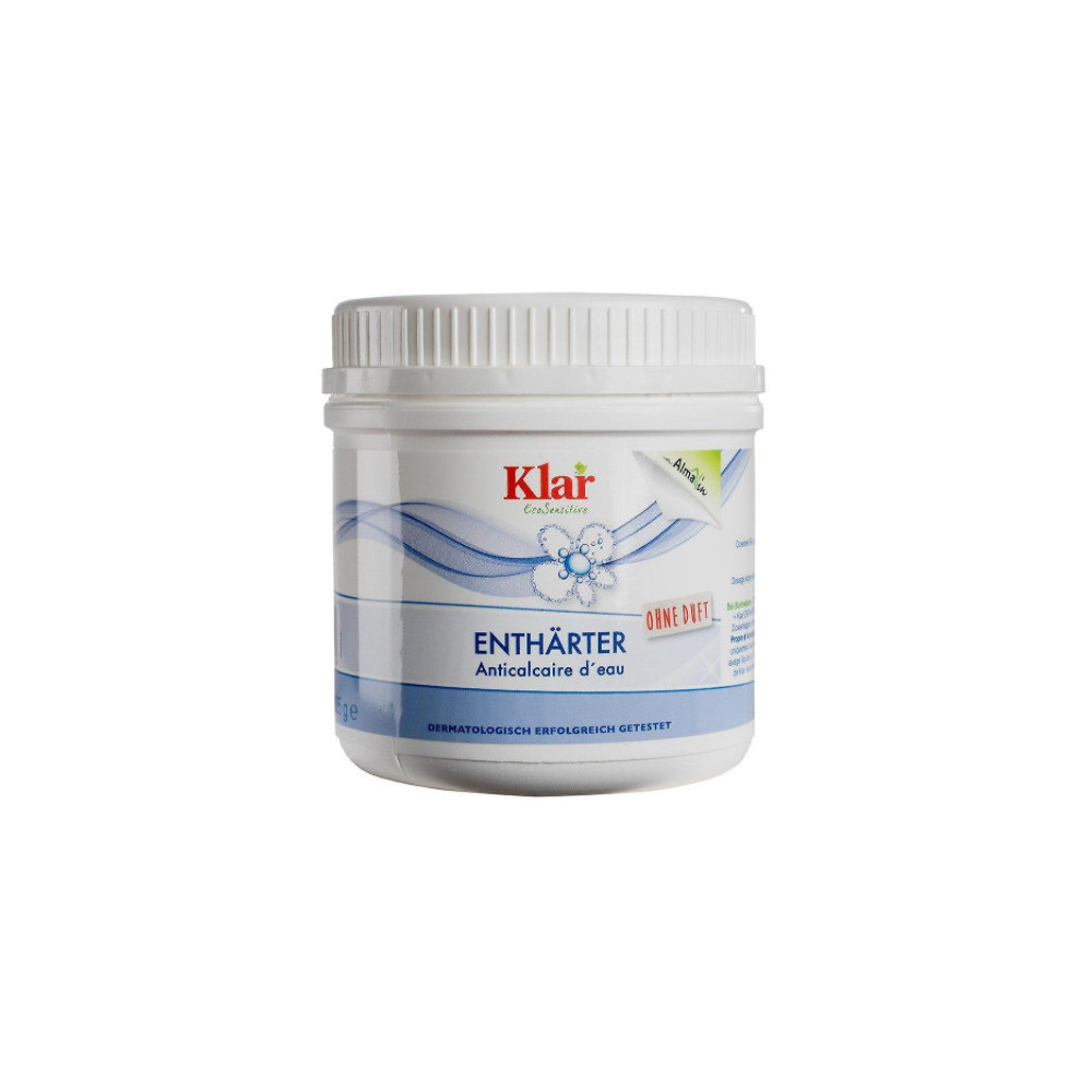 Klar změkčovač vody váže díky přírodním složkám kalciové a magnéziové ionty, které znehodnocují proces praní, a zmenšuje i samotnou tvrdost vody. Změkčuje vodu a vytváří tak optimální prostředí pro působení mýdla - hlavní aktivní složky pracích prostředků. Tímto se zlepší prací výsledek a také se ochrání pračka. Používejte v případě, že máte v domácnosti tvrdou nebo velmi tvrdou vodu.